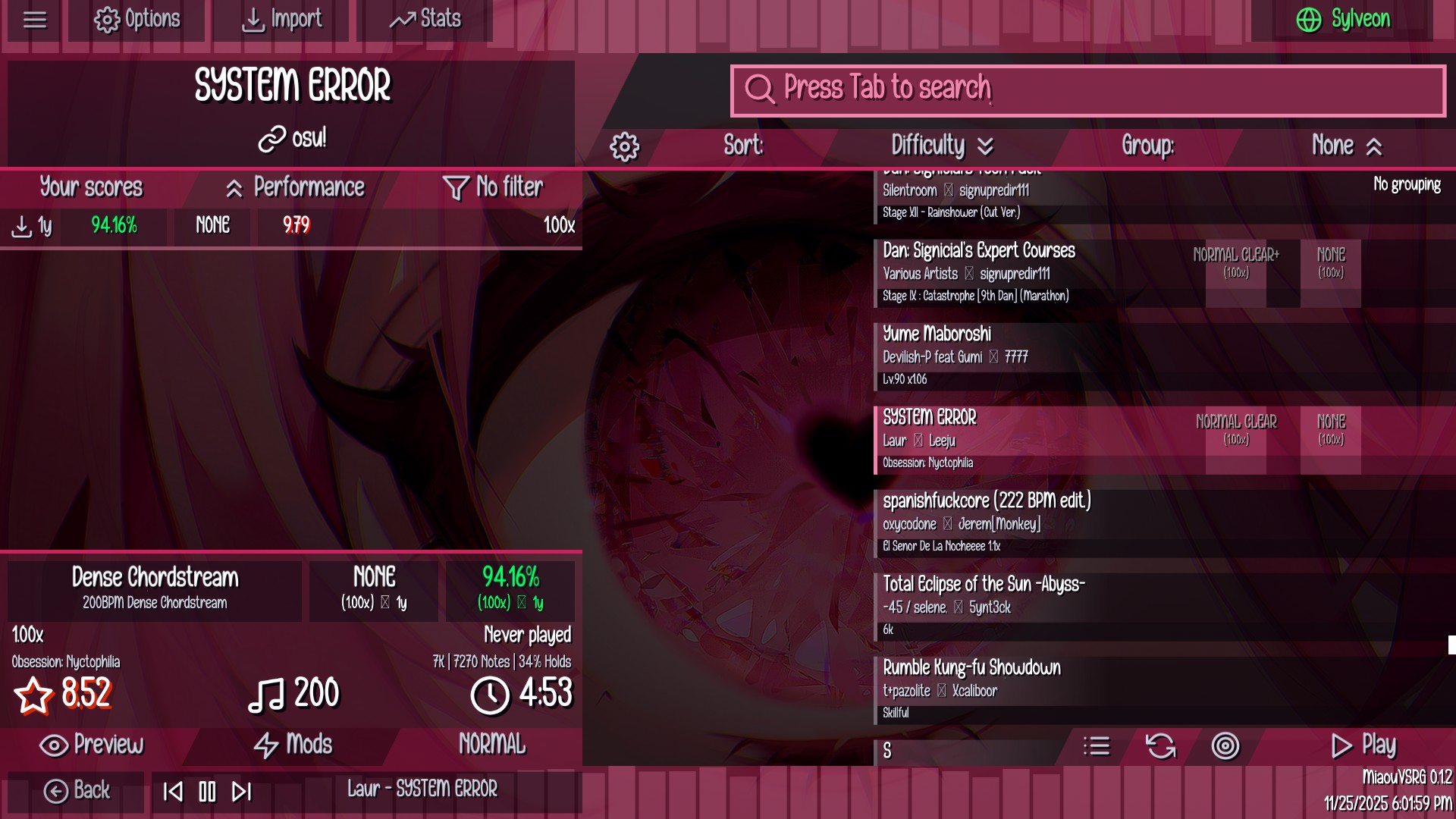 MiaouVSRG is a work-in-progress rhythm game project created by Babil and Kyun, built upon the engine of YAVSRG (Yet Another Vertically Scrolling Rhythm Game), created by Percyqaz.